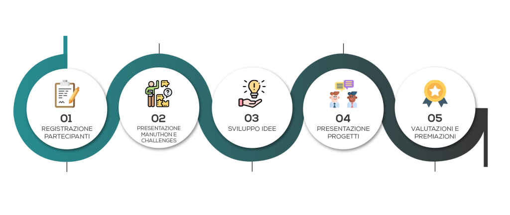 I partecipanti al ManuThon, sono chiamati a sviluppare in gruppo un progetto, proporre un’idea, concepire un prodotto o sviluppare un’App o un codice, etc. in risposta a delle specifiche challenges proposte da aziende nel settore del Manufacturing in un tempo limitato (orizzonte temporale di 2 giorni no-stop).